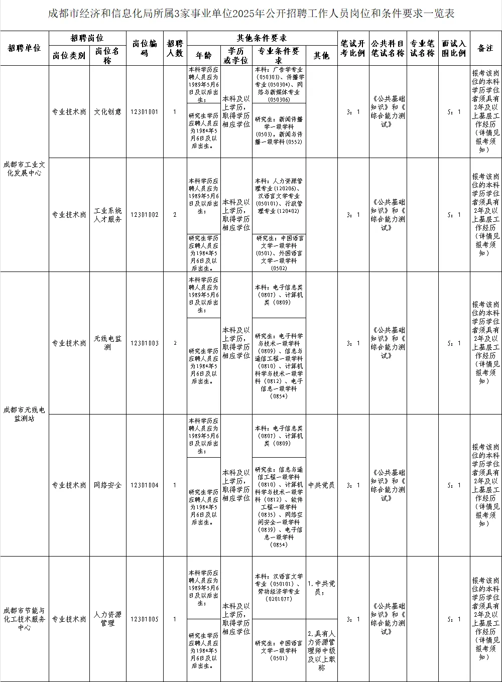 招聘岗位及名额:中共成都市委宣传部、中共成都市委网信办面向社会公开招聘工作人员5名。