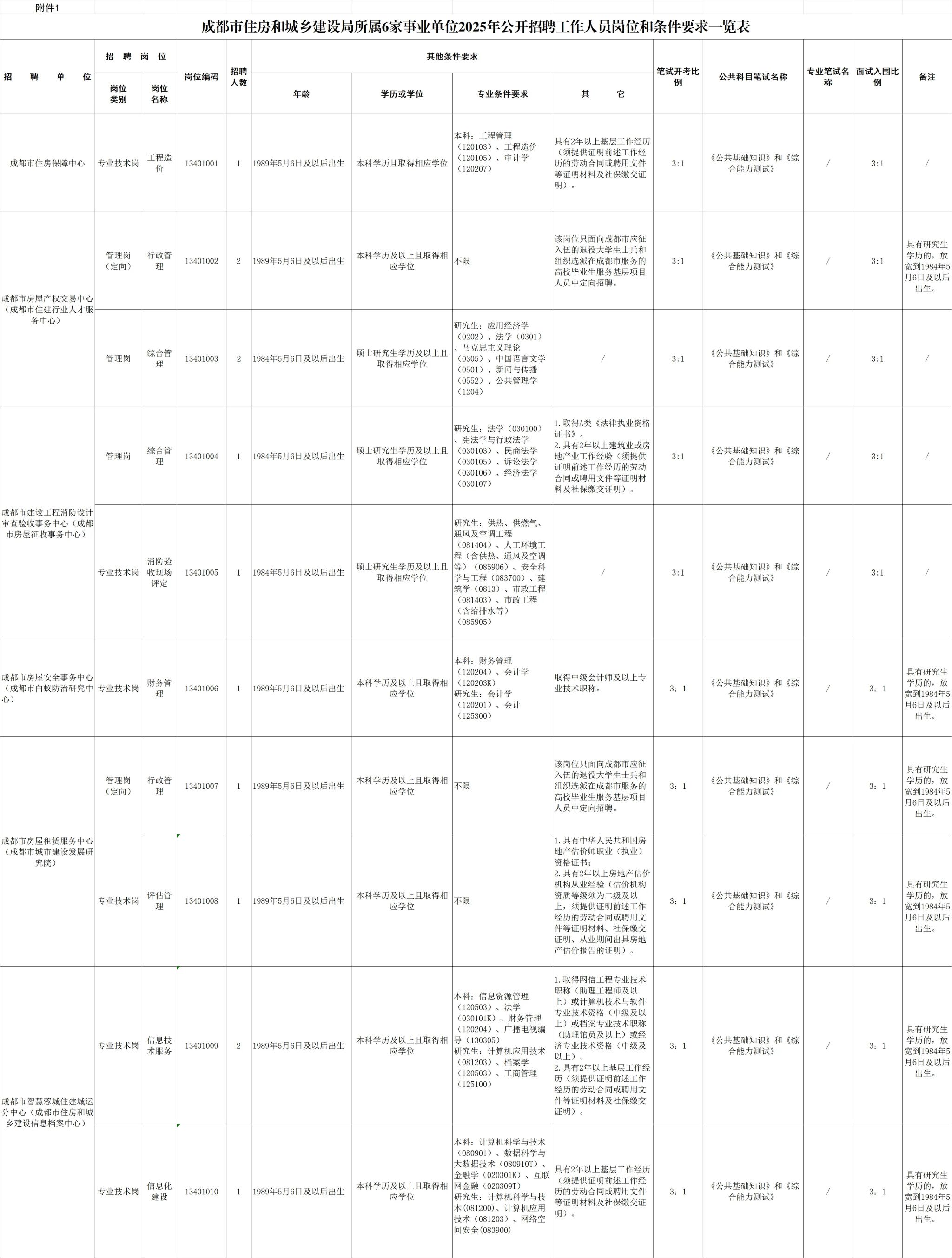招聘岗位及名额:成都市住房和城乡建设局面向社会公开招聘工作人员13名。