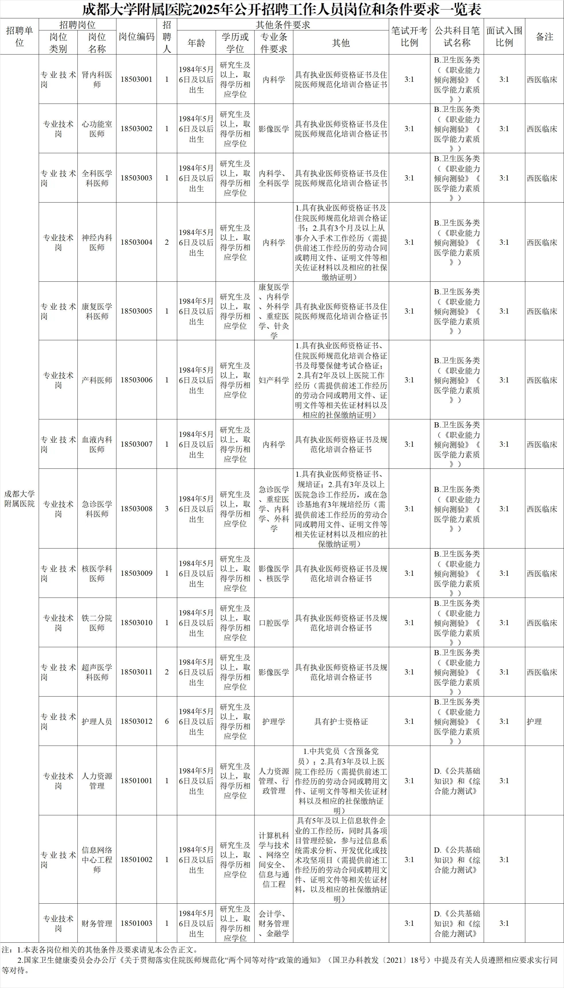 招聘岗位及名额:成都大学附属医院面向社会公开招聘工作人员24名。