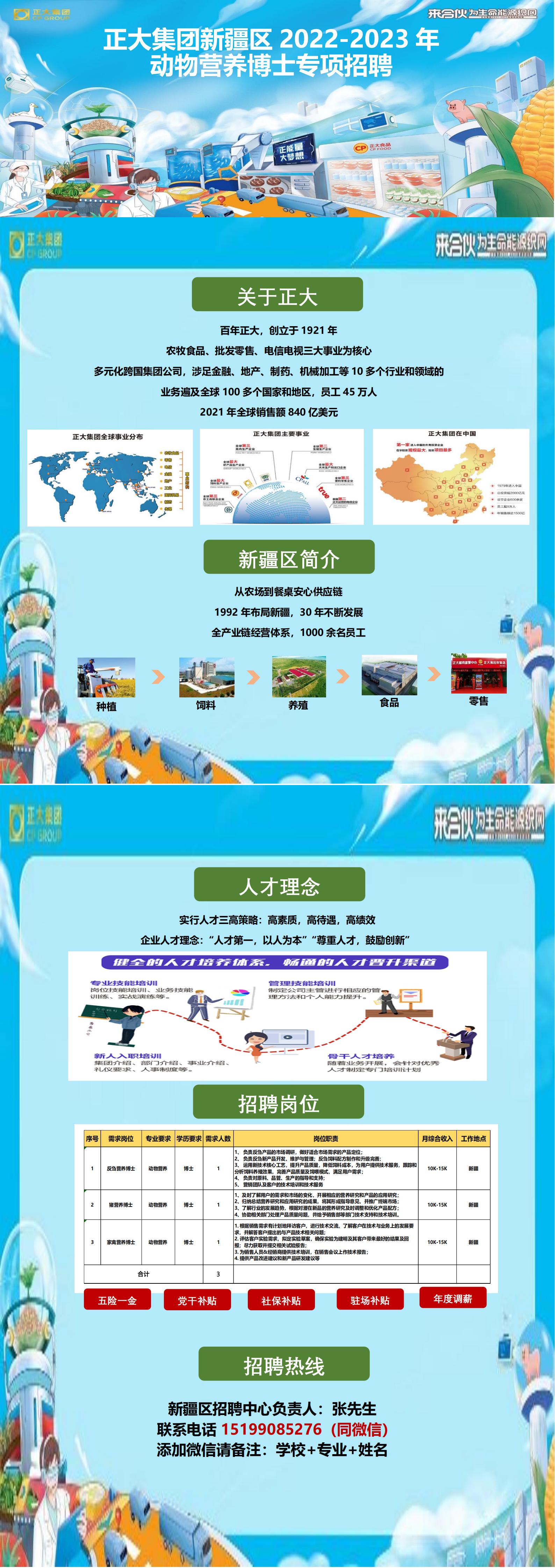 就业信息:正大集团新疆区2022-2023年动物营养博士专项招聘