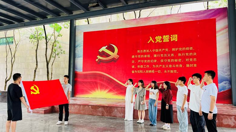 “我志愿加入中国共产党,拥护党的纲领,遵守党的章程,履行党员义务,执行党的决定……永不叛党。”党支部书记赵兵带领全体党员面向党旗,高举右拳重温入党誓词。铿锵誓言响彻广场,既是对革命先辈的深情告慰,更彰显了新时代党员赓续红色血脉、勇担时代重任的坚定信念。在党旗见证下,党员们回溯入党初心,将“全心全意为人民服务”的根本宗旨镌刻心间,为科研实践注入强劲精神动能。
