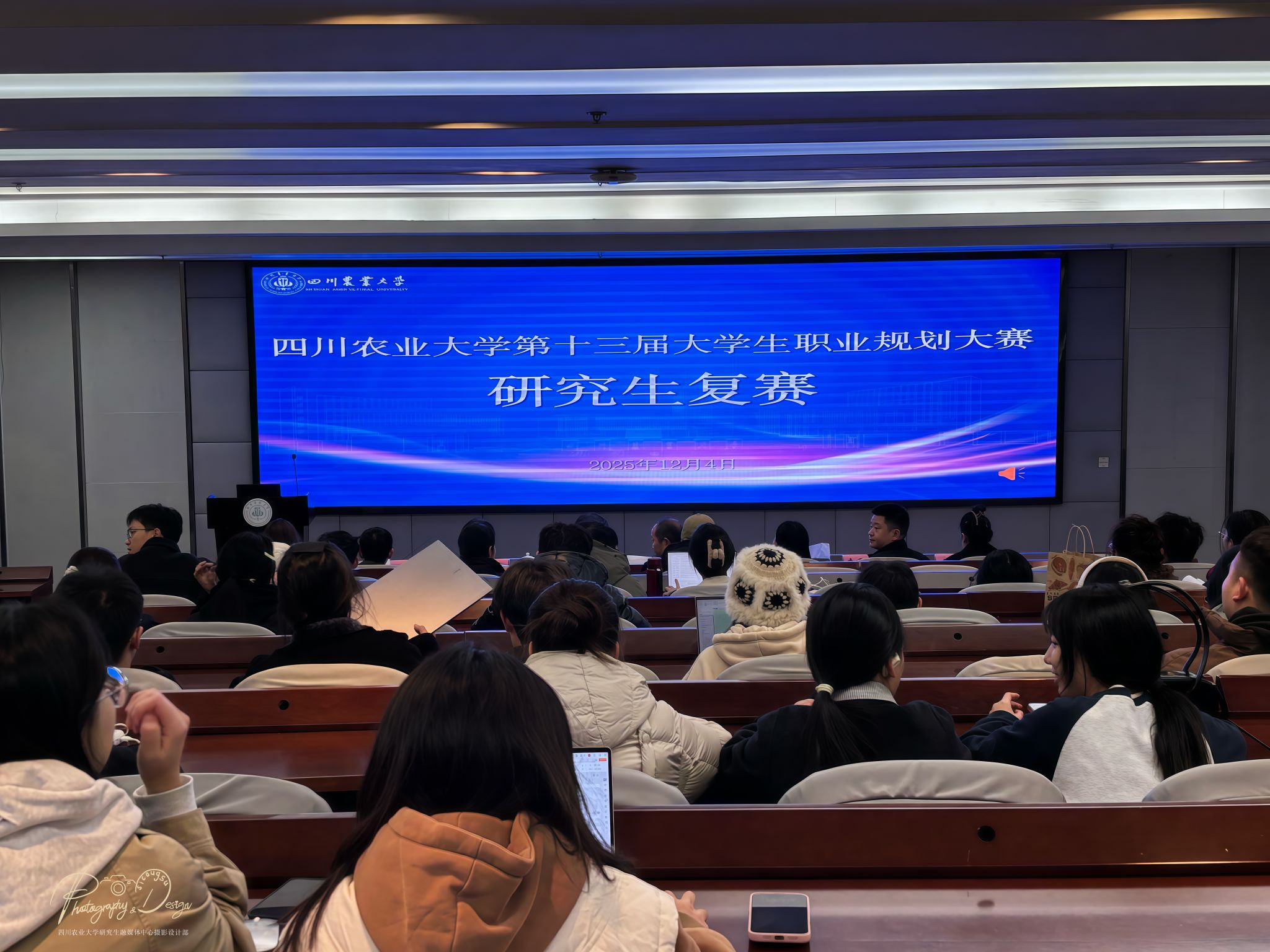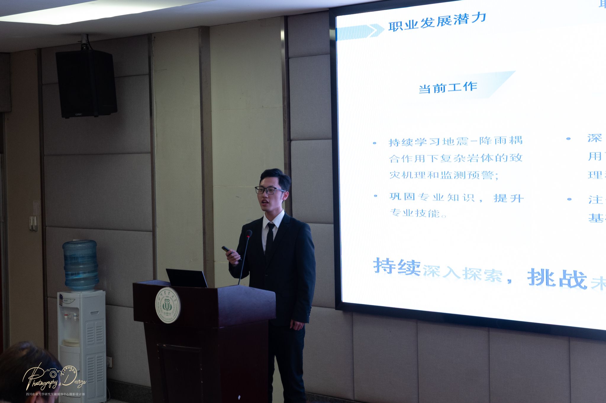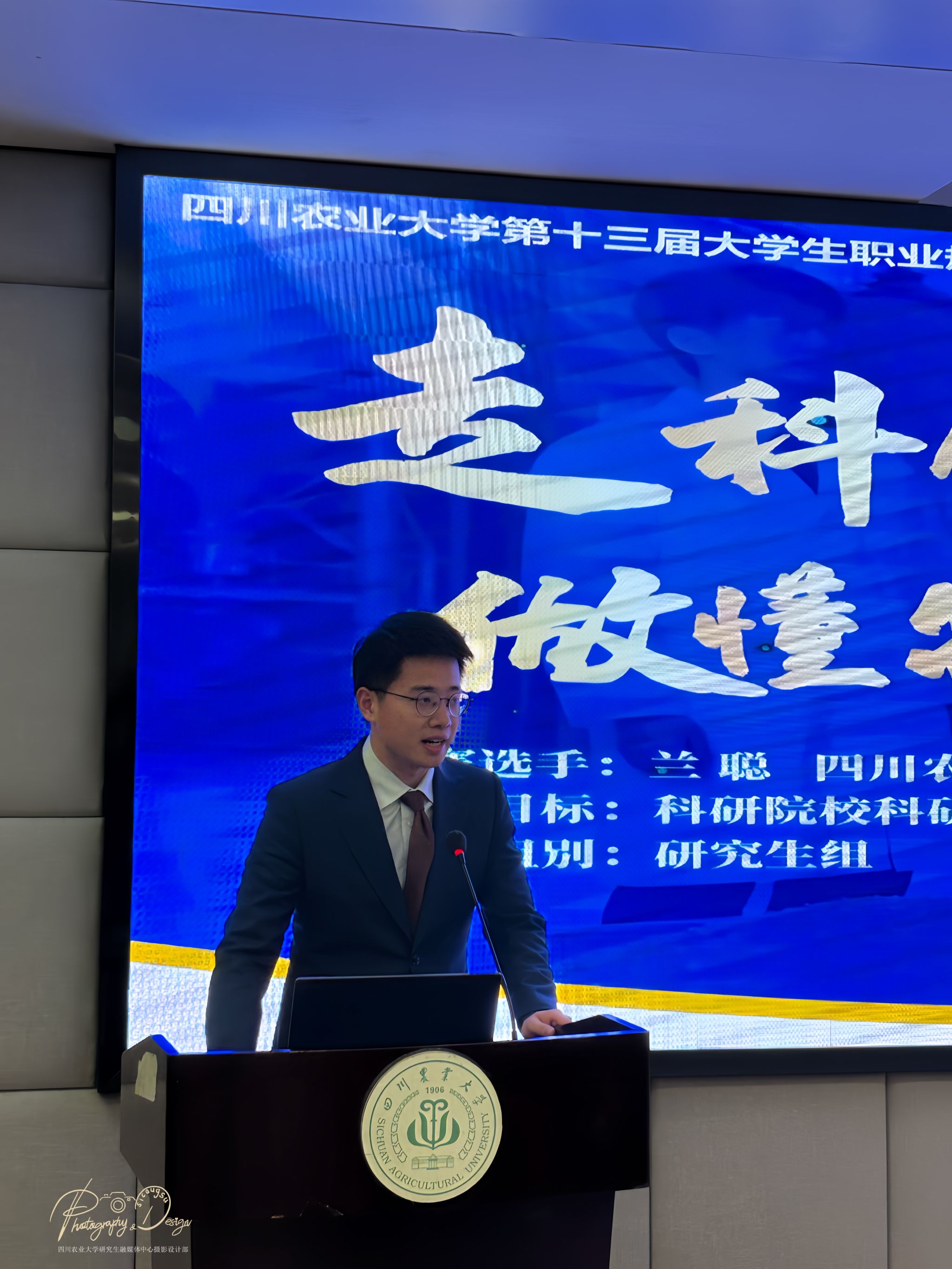 复赛现场气氛紧张而热烈。12位入围选手按照抽签顺序依次上台,进行了精彩的“主题陈述”。他们结合求职综合展示PPT,围绕个人职业目标、求职意向以及为实现目标所做准备进行陈述,充分展现了川农研究生扎实的能力素养。
