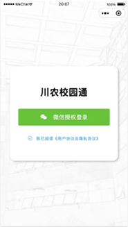 第一步:研究生使用微信搜索“川农校园通”小程序进行绑定。